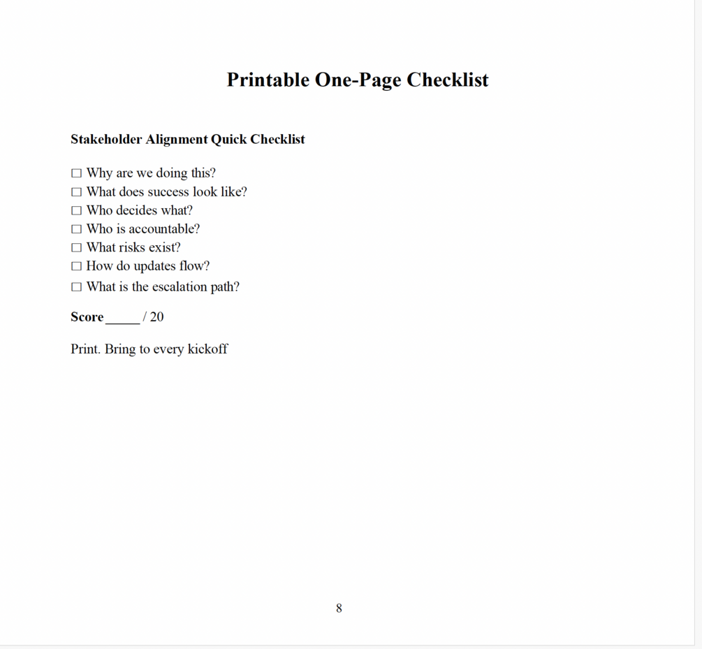 Stakeholder Alignment Checklist (0–2 scoring model)