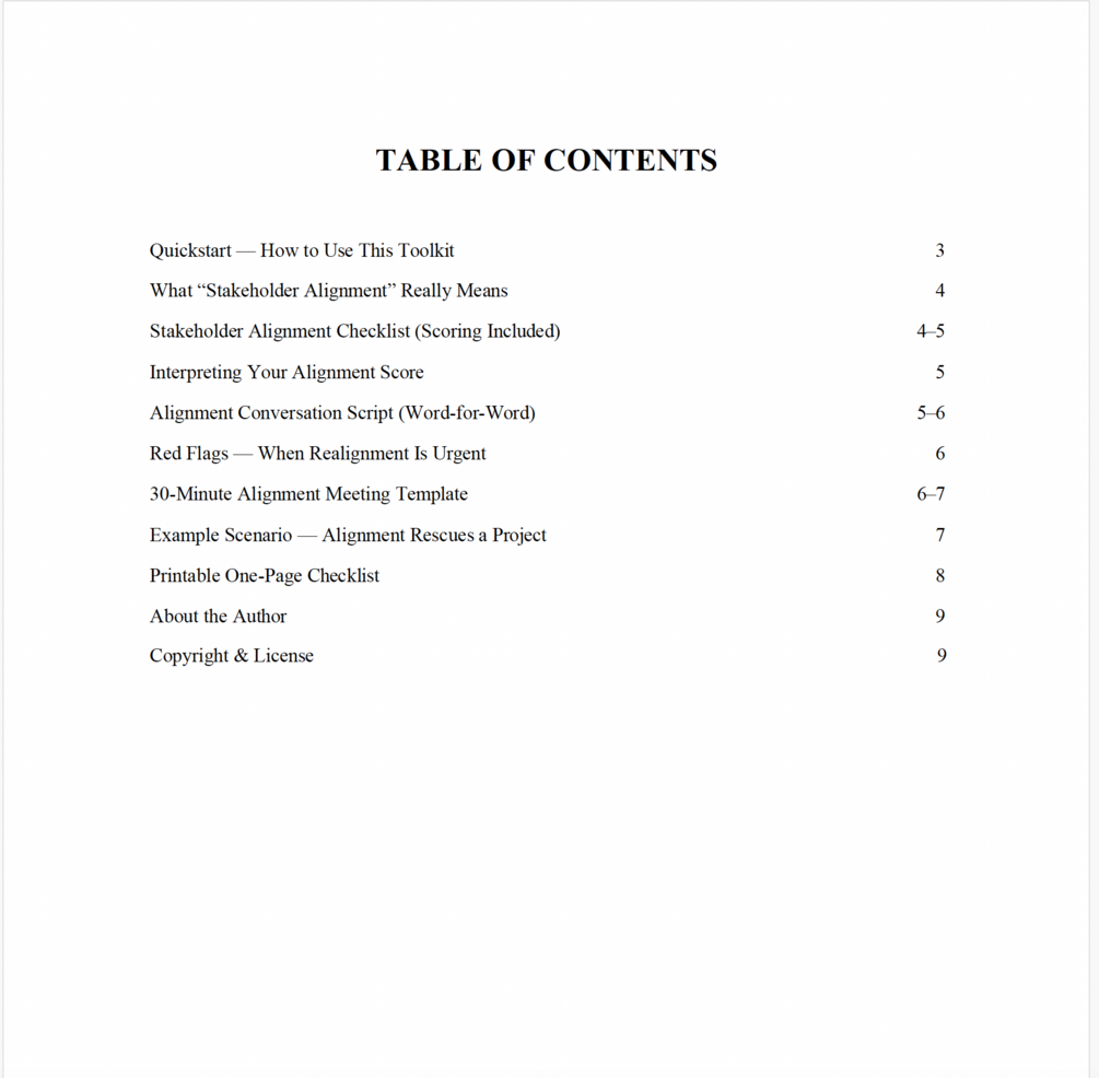 The Stakeholder Alignment Toolkit gives leaders a practical, step-by-step system to ensure everyone understands: